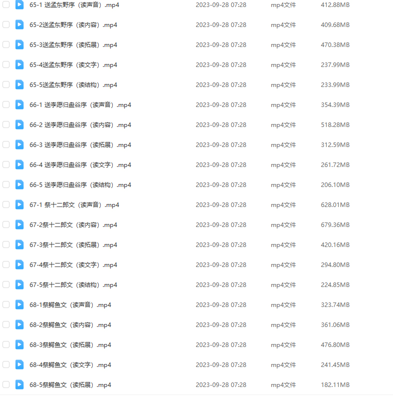 申怡的古文观止 学习古文知识深入培养基础1-68课 声明:本站资源来自会员发布以及互联网公开收集,不代表本站立场,仅限学习交流使用,请遵循相关法律法规,请在下载后24小时内删除。 如有侵权争议、不妥之处请联系本站删除处理! 请用户仔细辨认内容的真实性,避免上当受骗!